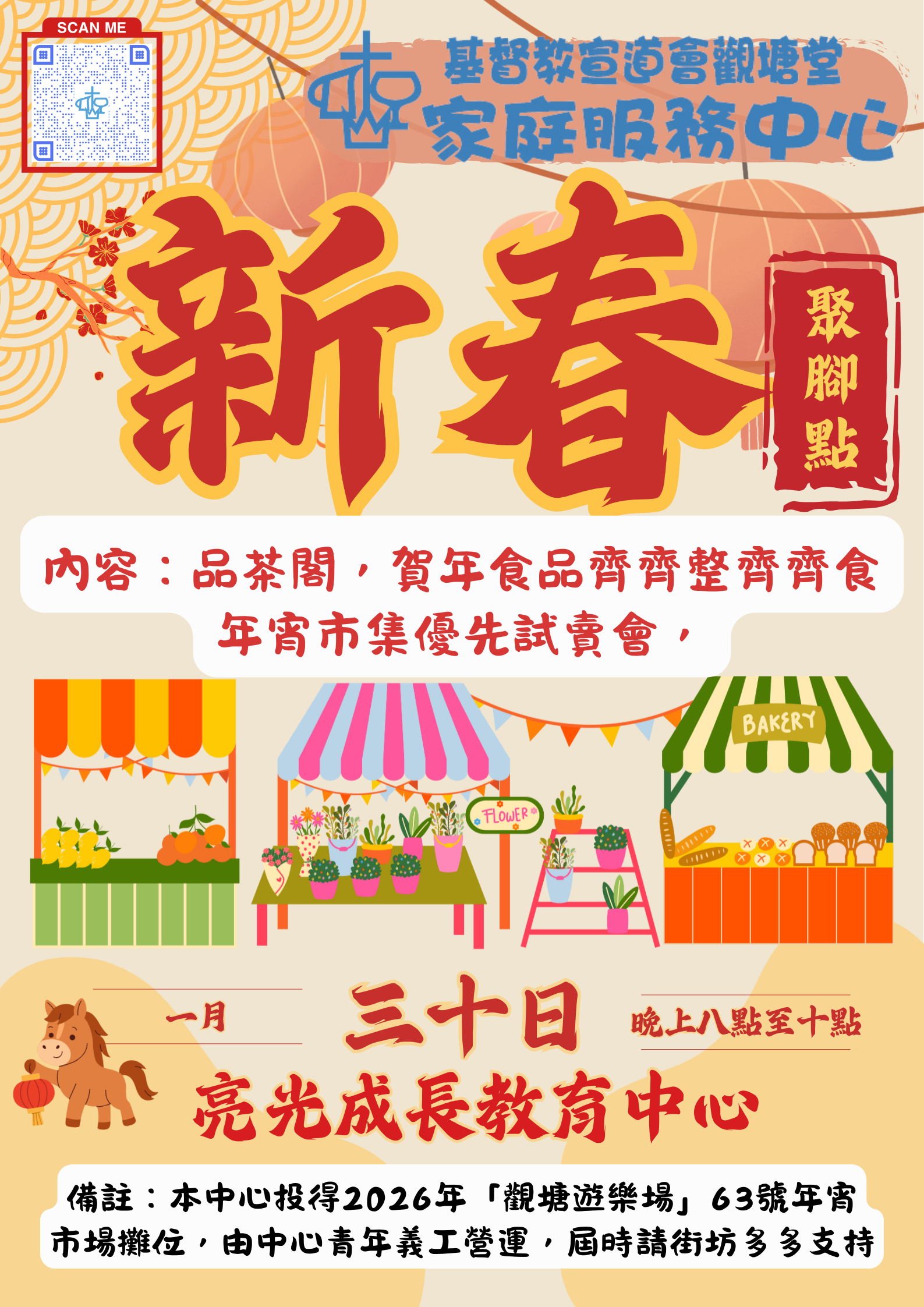本中心投得2026年「觀塘遊樂場」63號年宵市場攤位,由中心青年義工營運,屆時請街坊多多支持