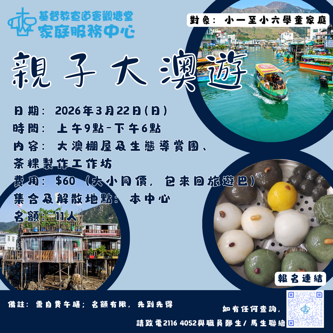 你有無試過親手制作茶粿? 對於棚屋的構造及歷史了解又有幾多呢????? 誠邀大家參與「大澳親子遊」,一齊體驗及探索大澳獨特漁村及生態文化????