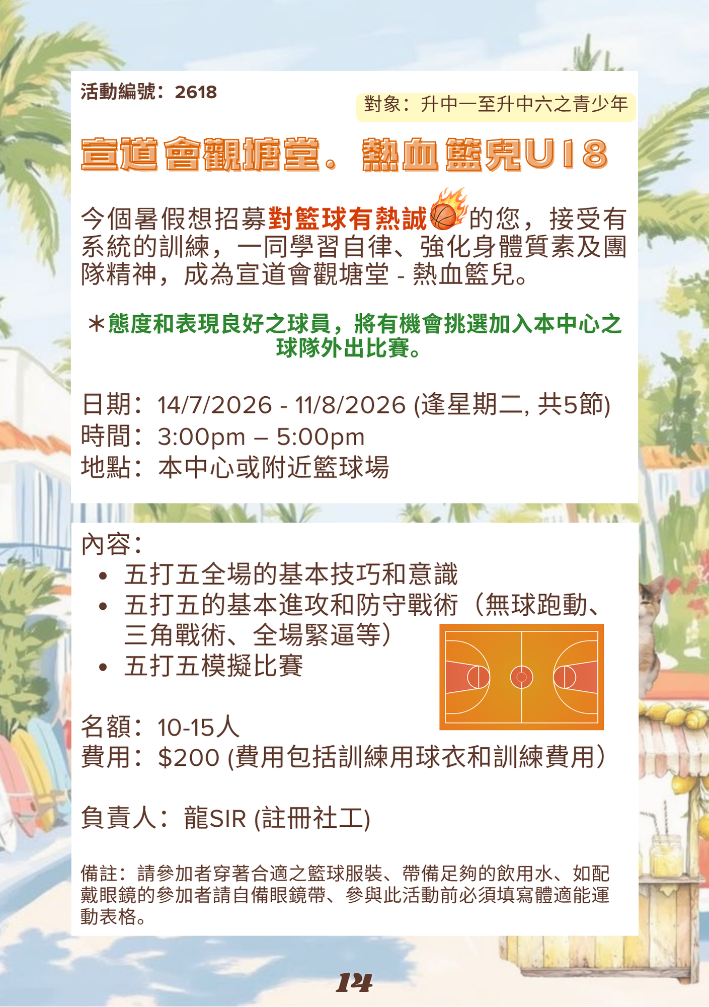 一同在暑假中訓練自律、強化身體質素、學習團隊精神,成為宣道會觀塘堂.熱血籃兒。