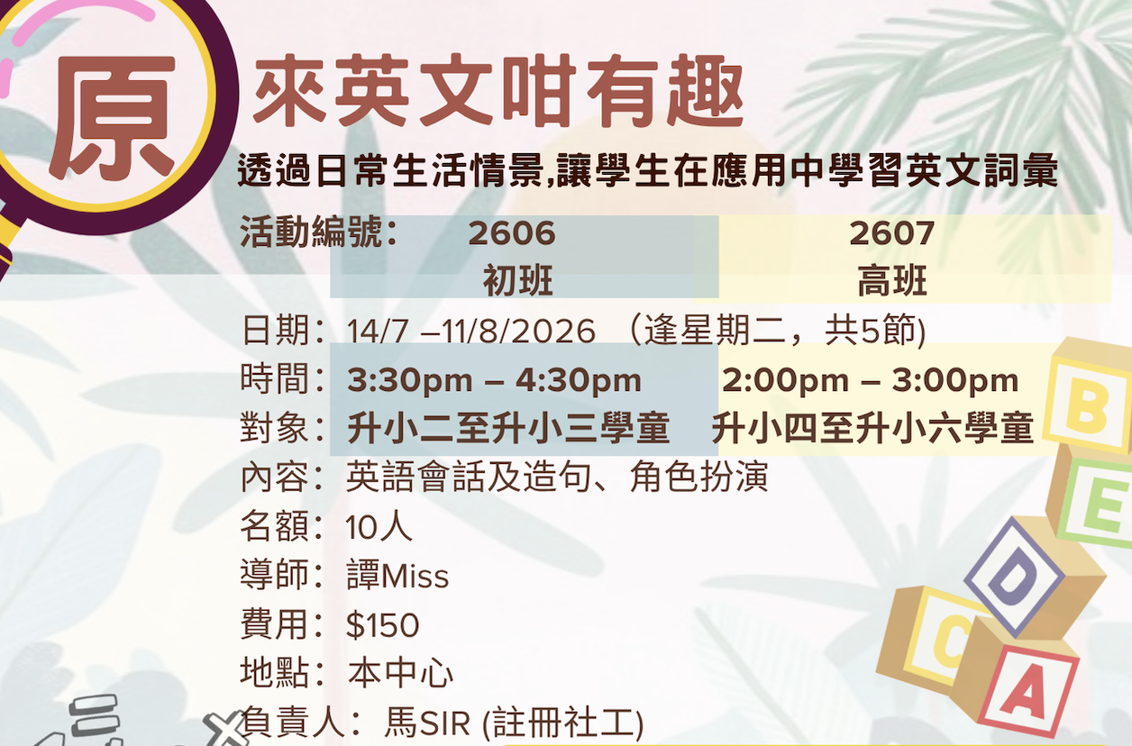透過日常生活情景,讓學生在應用中學習英文詞彙