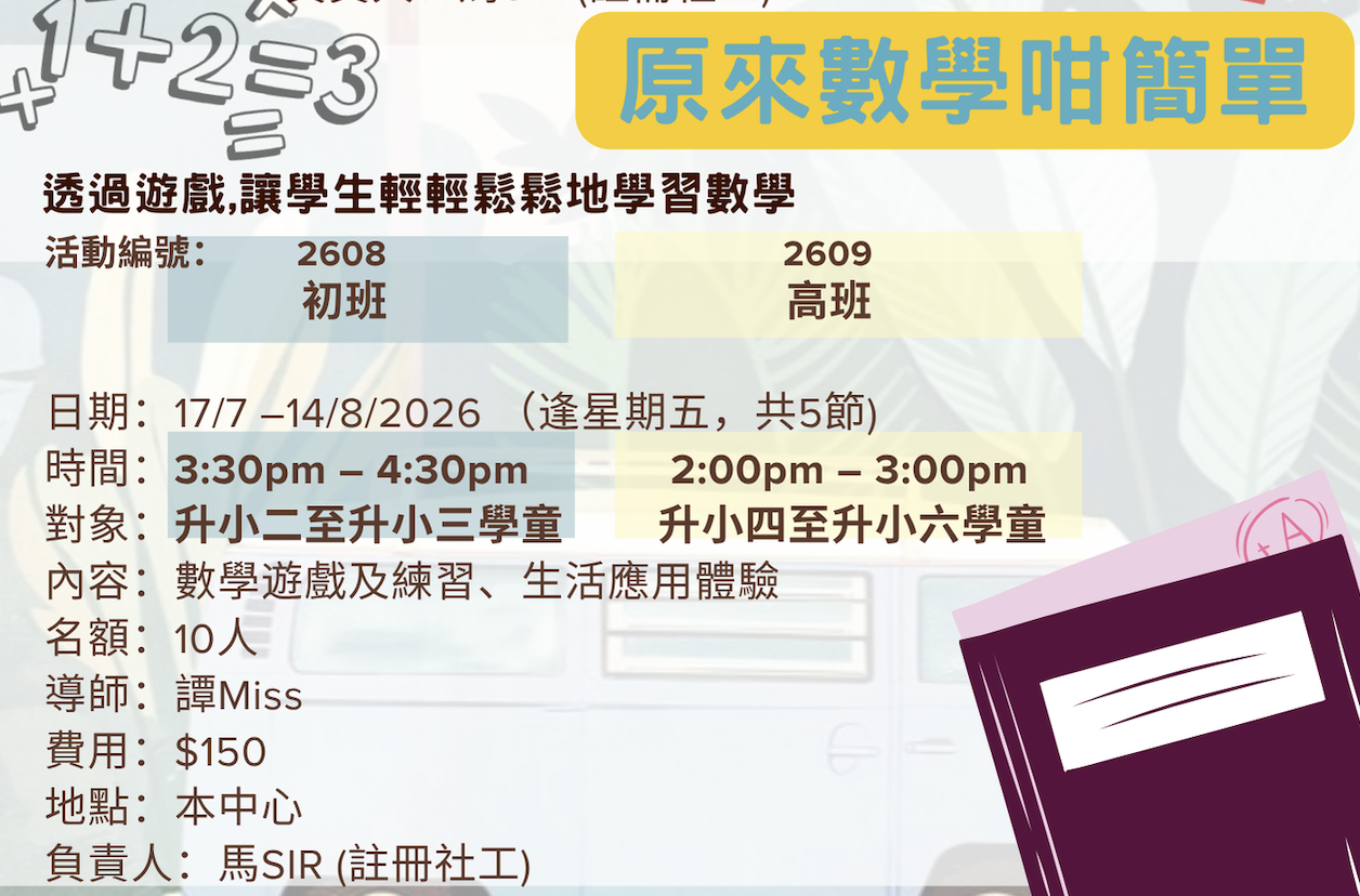 17/7-14/8/2026 (逢星期五,共5堂)